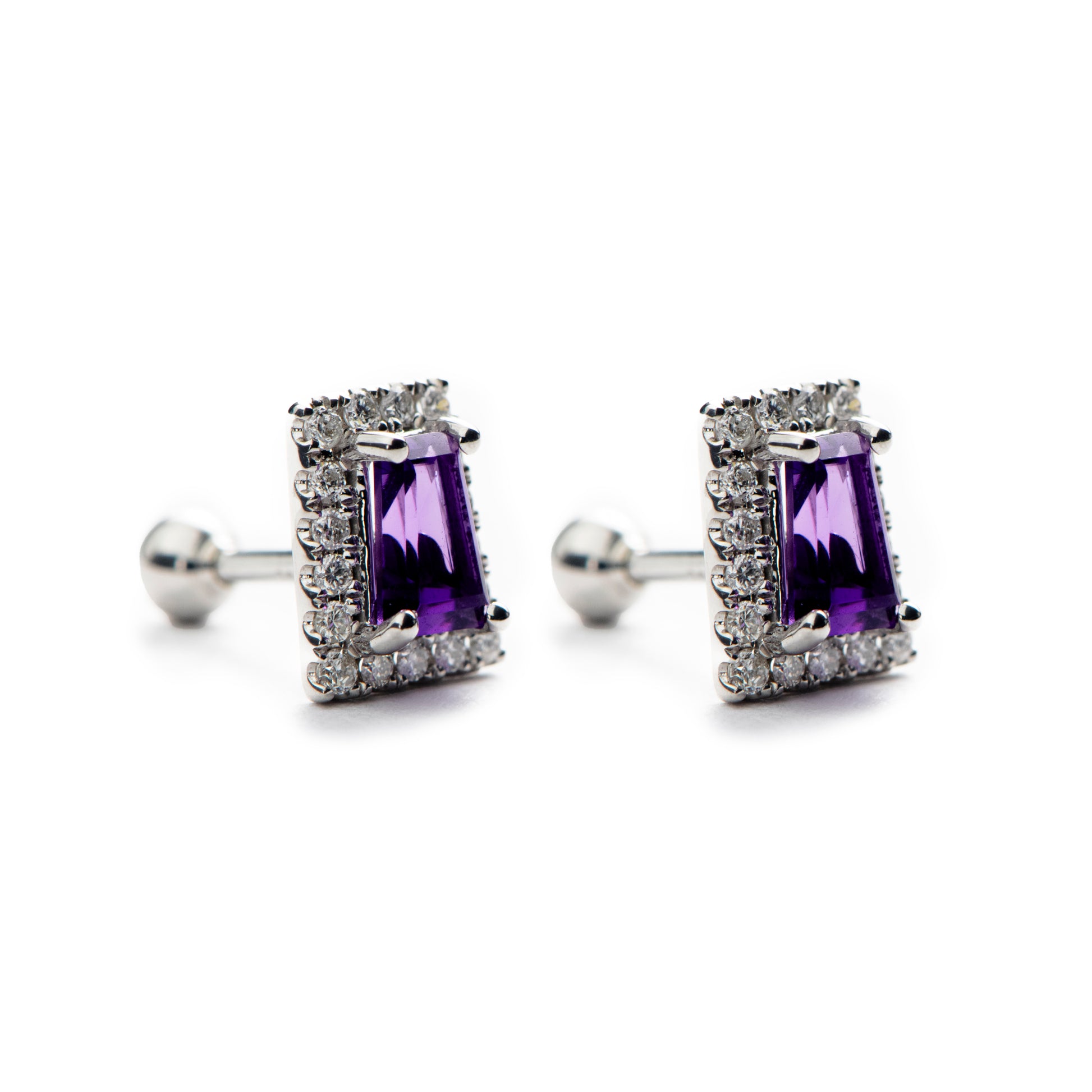 Singles en oro blanco de 18k con diamantes y amatista